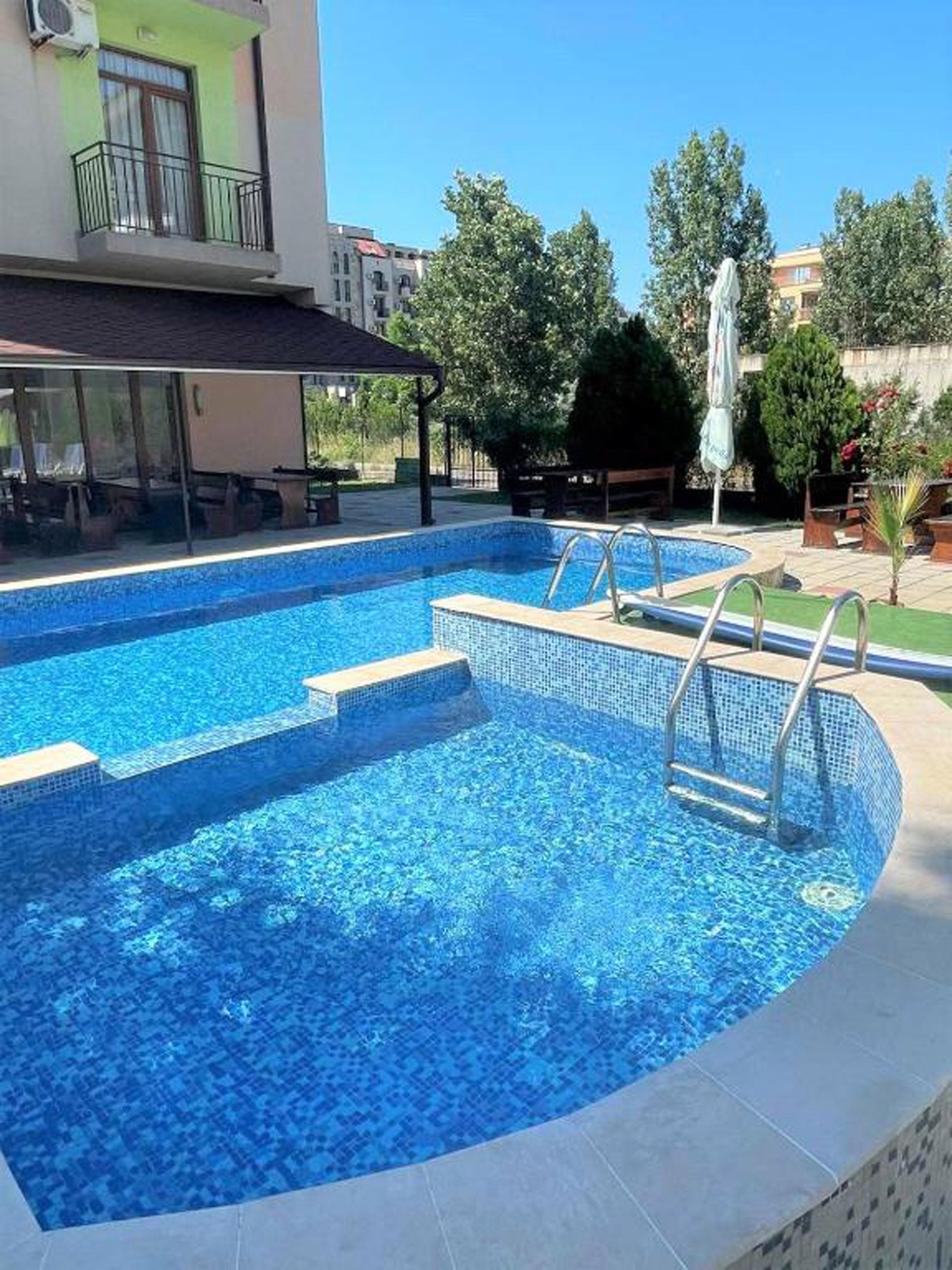 Централно място за отмора заема откритият басейн, заобиколен от зеленина и уютната градина на хотела – идеални за спокойствие под слънцето и прохлада в летните дни.